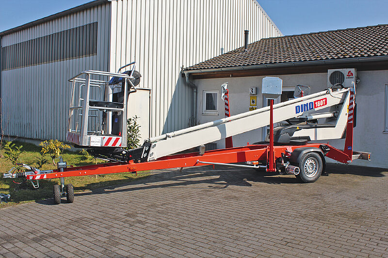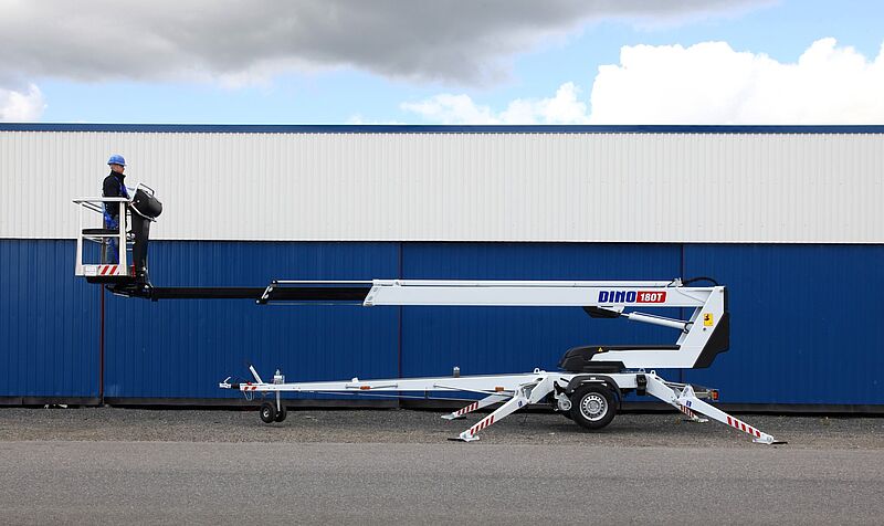 Diese Arbeitsbühne bietet maximale Reichweite bei voller Korbbelastung und überzeugt durch ihre kompakte Bauweise mit einer Transportlänge von nur 6,15 Metern. Mit einem Gesamtgewicht von weniger als 2.000 Kilogramm inklusive Motor ist sie leicht zu transportieren und stabil beim Schleppen. Das integrierte Fahrsystem mit Seillenkung ermöglicht eine einfache Bewegung am Einsatzort, während die hydraulische Korbdrehung von 180° und die kontinuierliche Drehung des Auslegers für höchste Flexibilität sorgen.