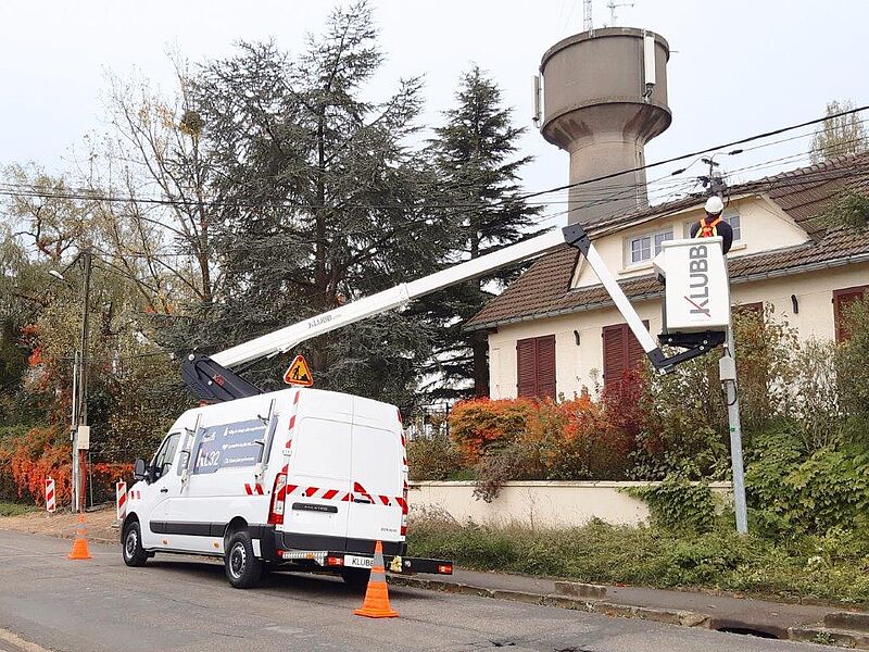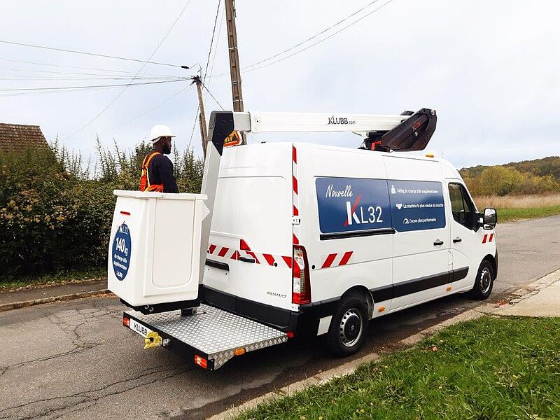 Die KLUBB KL32 ist eine leistungsstarke und dennoch kompakte Transporter-Arbeitsbühne, die speziell für Arbeiten in der Höhe entwickelt wurde – etwa bei der Wartung öffentlicher Beleuchtung, der Telekommunikationstechnik oder im kommunalen Einsatz. Dank ihres einzigartigen ausziehbaren Schwenkarms erreicht die Bühne eine Arbeitshöhe von bis zu 12,50 m und eine seitliche Reichweite von 7,30 m, was sie zu einem echten Allrounder im urbanen und gewerblichen Bereich macht.
